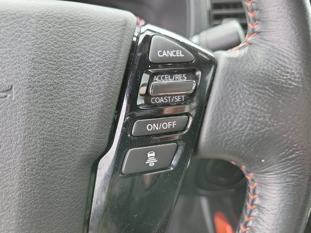Technology Package (Blind Spot Warning, High Beam Assist (HBA), Intelligent Cruise Control, Lane Departure Warning System, Rear Automatic Braking (RAB), Rear Cross Traffic Alert (RCTA), and Rear Sonar System), Tow Package, **CLEAN CARFAX**, **ONE-OWNER**, 17" Alloy Wheels, 3.692 Axle Ratio, 4-Wheel Disc Brakes, 6 Speakers, ABS brakes, Air Conditioning, Alloy wheels, AM/FM radio: SiriusXM, Anti-whiplash front head restraints, Automatic temperature control, Brake assist, Bumpers: body-color, Carpeted Floor Mats, Delay-off headlights, Driver door bin, Driver vanity mirror, Dual front impact airbags, Dual front side impact airbags, Electronic Stability Control, Electronic Tailgate Lock, Emergency communication system: NissanConnect Services, Front anti-roll bar, Front Bucket Seats, Front Center Armrest, Front dual zone A/C, Front fog lights, Front reading lights, Front wheel independent suspension, Fully automatic headlights, Illuminated entry, Knee airbag, Leather Shift Knob, Low tire pressure warning, Navigation system: Nissan Navigation with Voice Recognition, Occupant sensing airbag, Off-Road Style Step Rails, Overhead airbag, Overhead console, Panic alarm, Passenger door bin, Passenger vanity mirror, Power door mirrors, Power driver seat, Power steering, Power windows, PRO Embroidered Premium Cloth Seat Trim, PRO-X Mud Flaps, Radio data system, Radio: SXM/AM/FM/AUX/USB Audio System w/6 Speakers, Rear anti-roll bar, Rear seat center armrest, Rear step bumper, Remote Engine Starter Accessory, Remote keyless entry, Security system, Speed control, Speed-sensing steering, Split folding rear seat, Steering wheel mounted audio controls, Tachometer, Tilt steering wheel, Traction control, Trip computer, Variably intermittent wipers, and Voltmeter.