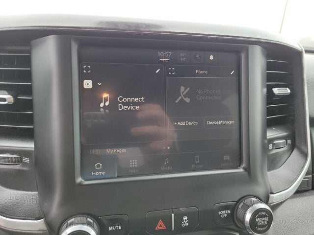 Cold Weather Group (Engine Block Heater), Heavy Duty Snow Plow Prep Group (220 Amp Alternator), Level 1 Equipment Group (2 Way Rear Headrest Seat, 2nd Row In Floor Storage Bins, 4 Way Front Headrests, 40/20/40 Split Bench Seat, 4G LTE Wi-Fi Hot Spot, 8.4" Touchscreen Display, Apple CarPlay, Auto Power-Folding Mirrors, Big Horn IP Badge, Black Exterior Mirrors, Bluetooth® Handsfree Phone & Audio, Center Hub, Connectivity - US/Canada, Dual Glove Boxes, Exterior Mirrors Courtesy Lamps, Exterior Mirrors w/Heating Element, Exterior Mirrors w/Supplemental Signals, Foam Bottle Insert (Door Trim Panel), Footwell Courtesy Lamp, For Details, Visit DriveUconnect.com, For More Info, Call 800-643-2112, Forward & Reverse Utility Lights, Front Armrest w/Cupholders, Front Center Seat Cushion Storage, Front Fog Lamps, Global Telematics Box Module (TBM), Glove Box Lamp, Google Android Auto, GPS Antenna Input, Integrated Center Stack Radio, Integrated Voice Command w/Bluetooth®, Leather Wrapped Steering Wheel, Locking Lower Glove Box, Mirror Running Lights, Power 2-Way Driver Lumbar Adjust, Power Adjust Mirrors, Power Adjustable Convex Aux Mirrors, Power Heated Fold Telescope Mirrors, Power Telescoping Mirrors, Radio: Uconnect 5 W w/8.4" Display (A62), Rear Dome w/On/Off Switch Lamp, Remote USB Port - Charge Only, Selectable Tire Fill Alert, SiriusXM Radio Service, SiriusXM Satellite Radio, Steering Wheel Mounted Audio Controls, Storage Tray, and Wheels: 18" x 8.0" Polished Aluminum), Level 1 Equipment Group w/2Y, Off Road Package (Tow Hooks), Quick Order Package 2HZ Big Horn, **AUTOMATIC**, **CLEAN CARFAX**, **NEW TIRES**, **NEW, LOWER PRICE**, **NO ACCIDENTS**, **NON SMOKER**, **ONE-OWNER**, **STILL UNDER FACTORY WARRANTY**, 3.73 Axle Ratio, 4-Wheel Disc Brakes, 6 Speakers, ABS brakes, Active Noise Control System, Air Conditioning, Anti-Spin Differential Rear Axle, Brake assist, Bumpers: chrome, Center Stack Storage Drawer, Chrome Flat Cab-Length Side Steps, Cloth 40/20/40 Bench Seat, Compass, Delay-off headlights, Driver door bin, Dual front impact airbags, Dual front side impact airbags, Electronic Stability Control, Electronically Controlled Throttle, Emergency communication system: SiriusXM Guardian, Front anti-roll bar, Front Center Armrest w/Storage, Front License Plate Bracket, Front reading lights, Fully automatic headlights, Heated door mirrors, Illuminated entry, Low tire pressure warning, Manual Adjust 4-Way Driver Seat, MOPAR Spray In Bedliner, Occupant sensing airbag, Outside temperature display, Overhead airbag, Overhead console, Panic alarm, ParkSense Front/Rear Park Assist System, ParkView Rear Back-Up Camera, Passenger door bin, Passenger vanity mirror, Power door mirrors, Power steering, Power windows, Premium Cloth 40/20/40 Bench Seat (DISC), Radio data system, Radio: Uconnect 3 w/5" Display, Radio: Uconnect 5 W w/8.4" Display, Rear anti-roll bar, Rear Backup Alarm, Rear Folding Seat, Rear seat center armrest, Rear step bumper, Rear Window Defroster, Remote keyless entry, Speed control, Tachometer, Tilt steering wheel, Tip Start, Traction control, Trip computer, Turn signal indicator mirrors, Variably intermittent wipers, Voltmeter, and Wheels: 18" x 8.0" Steel Chrome ClaD.