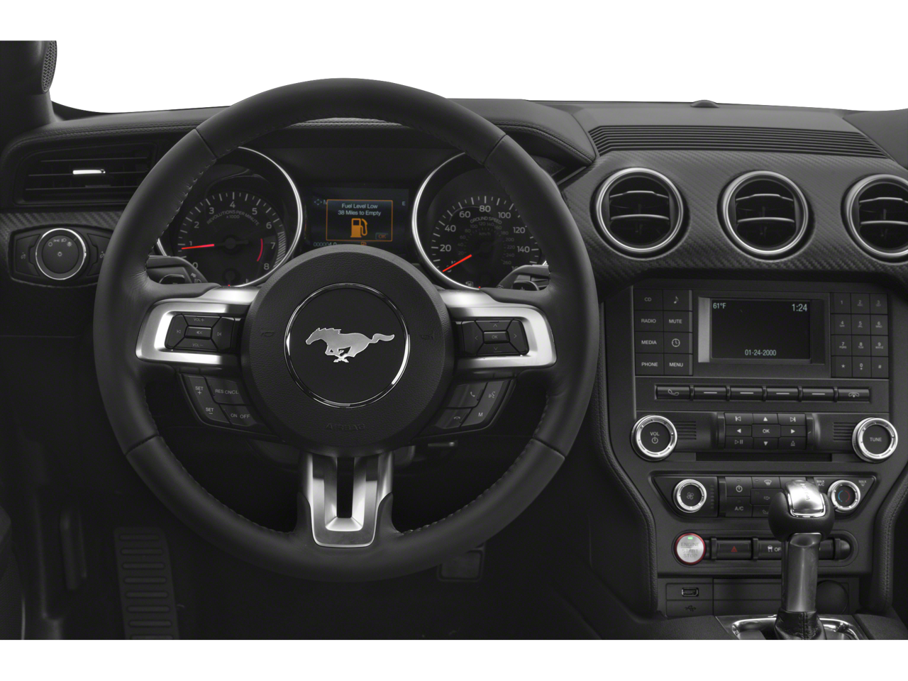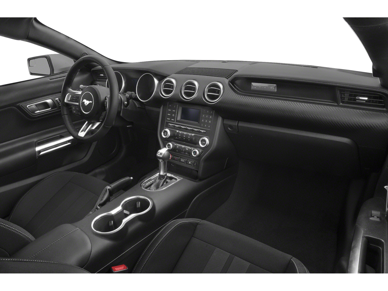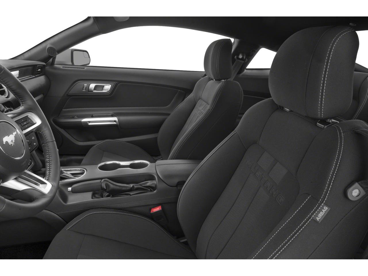 Black Accent Package (Black Blade Decklid Spoiler, Black Front & Rear Pony Badges, Painted Black Roof, and Wheels: 19" x 8.5" Ebony Black-Painted Aluminum), Equipment Group 100A, **LOCAL TRADE**, 4-Wheel Disc Brakes, 6 Speakers, ABS brakes, Air Conditioning, Alloy wheels, AM/FM radio, AM/FM Stereo, Auto-dimming Rear-View mirror, Brake assist, Bumpers: body-color, Compass, Delay-off headlights, Driver door bin, Driver vanity mirror, Dual front impact airbags, Dual front side impact airbags, Electronic Stability Control, Emergency communication system: 911 Assist, Exterior Parking Camera Rear, Four wheel independent suspension, Front anti-roll bar, Front Bucket Seats, Front Center Armrest, Front reading lights, Fully automatic headlights, Illuminated entry, Knee airbag, Leather Shift Knob, Low tire pressure warning, Occupant sensing airbag, Outside temperature display, Overhead airbag, Overhead console, Panic alarm, Passenger door bin, Passenger vanity mirror, Power door mirrors, Power steering, Power windows, Radio data system, Rear anti-roll bar, Rear window defroster, Remote keyless entry, Security system, Speed control, Speed-sensing steering, Speed-Sensitive Wipers, Split folding rear seat, Steering wheel mounted audio controls, SYNC Communications & Entertainment System, Tachometer, Telescoping steering wheel, Tilt steering wheel, Traction control, Trip computer, Variably intermittent wipers, Voltmeter, and Wheels: 17" Sparkle Silver-Painted Aluminum.